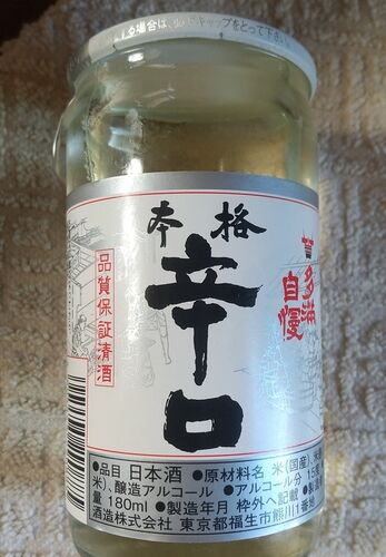 少し前、多摩方面に行く所用があつた。所用と云つても、仕事がどうかうではなかつた。だからお酒を買つた。その中のひとつが、下の画像である。 石川酒造は[多満自慢]のカップ。 なんだカップ酒かと笑つてはいけません。しやんとした酒藏が醸るカップ酒なら…